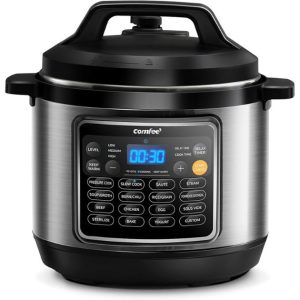 Guys, if you want to purchase this pressure cooker, then it will be very beneficial for you because this pressure cooker comes with 6 helpful components, which are 1 spoon, 1 ladel, 1 condensation cup, 1 measuring cup, 1 steam rack, and 1 power cord. Guys, I would like to share with you that this pressure cooker has 16 programmable preset functions, which will help to allows you to cook various gourmet dishes like meat, broth, bean, oatmeal, etc. Let me inform you that the capacity of this pressure cooker is 8 quarts.